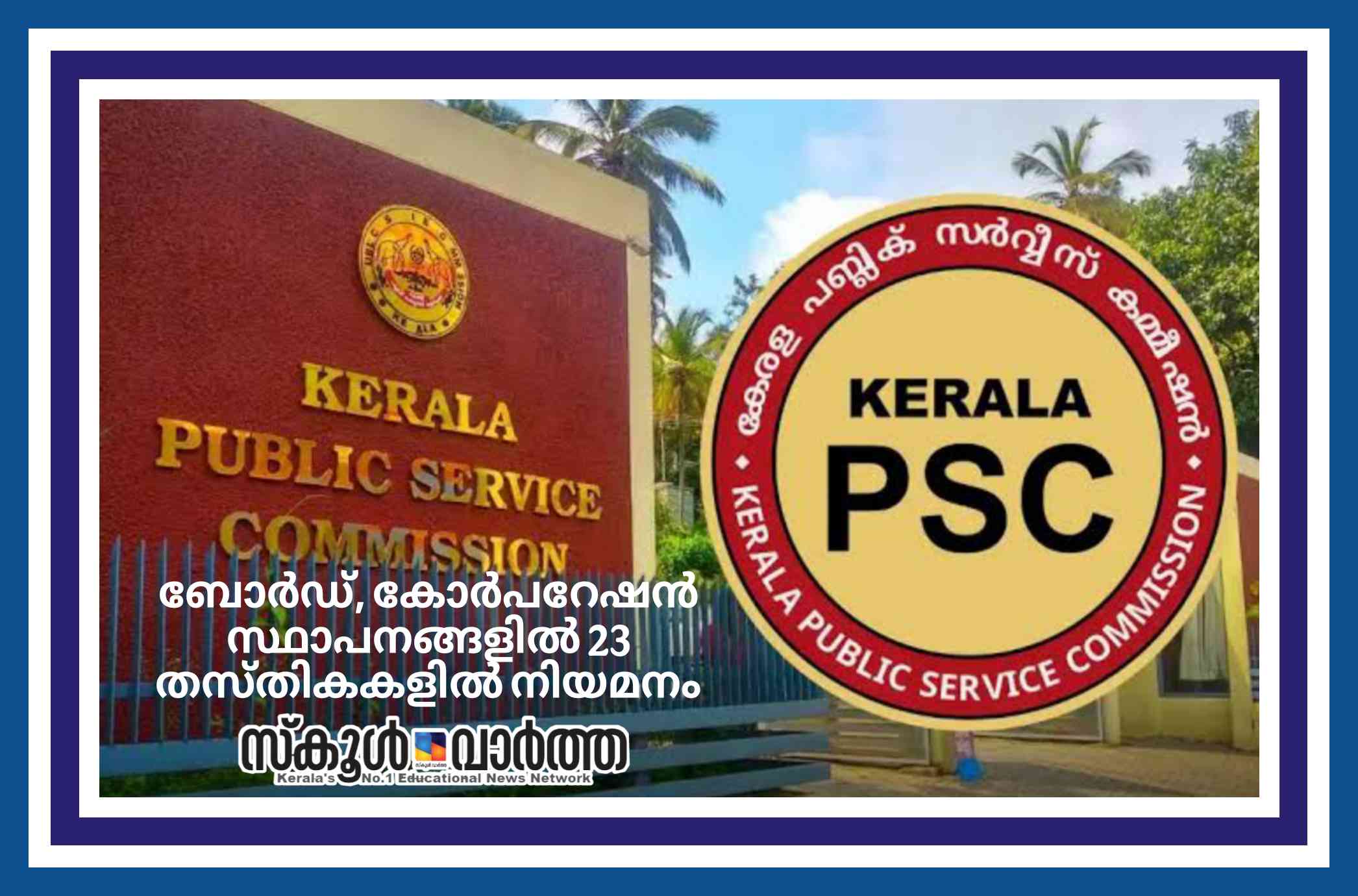ബോർഡ്, കോർപറേഷൻ സ്ഥാപനങ്ങളിൽ 23 തസ്തികകളിൽ നിയമനം: പി.എസ്.സി വിജ്ഞാപനം 15ന്